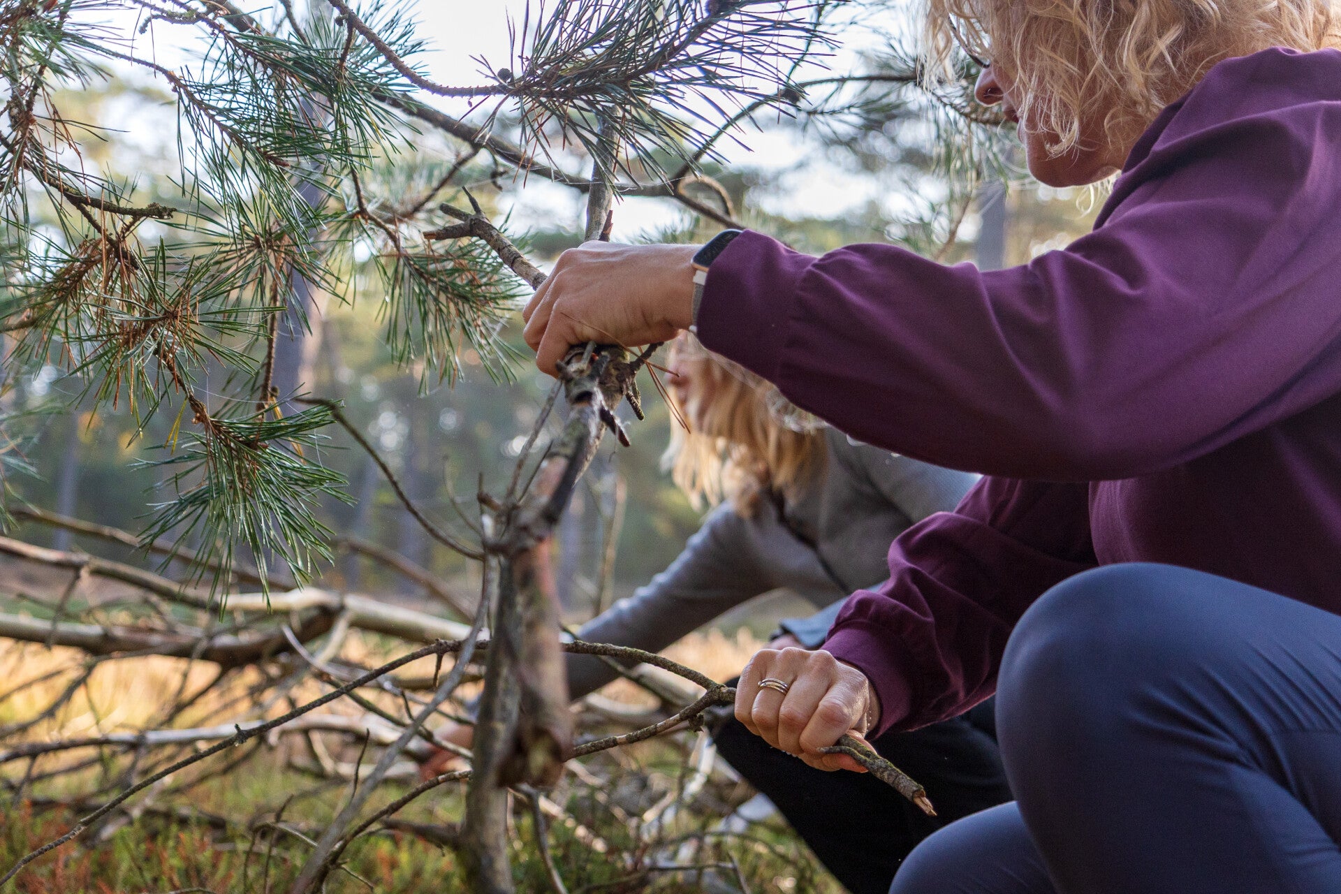 Vaak buiten, in het bos. Soms binnen.